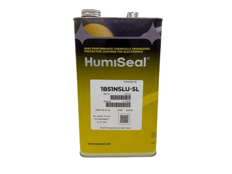 HumiSeal®️ 1B51NSLU is a fast-drying, single-component synthetic rubber conformal coating formulated with methylcyclohexane solvent, which is more environmentally friendly compared to traditional solvents. Thanks to its unique base polymer, it offers extremely low moisture vapor permeability. It provides excellent flexibility, exerts low stress on components, fluoresces under UV light for easy inspection, and is easily repairable. Fully compliant with RoHS Directive 2002/95/EC.