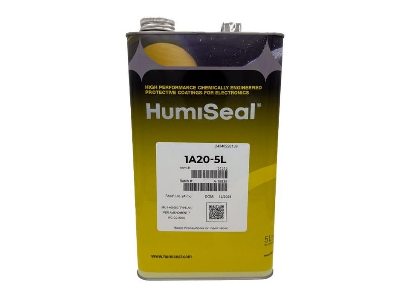 HumiSeal®️ 1A20 is a single-component, chemical-resistant, fast-curing polyurethane conformal coating. It fluoresces under UV light to facilitate inspection.